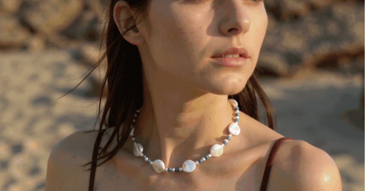 İnci Kolye, V Şeklinde Doğal Taşlı Kolye, 925 Ayar Gümüş
